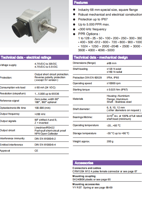 | ○ | 輸出頻率:>200 kHz | ○ | 輸出信號:90° 移相 A、B、Z ,+ 取反 | |||
