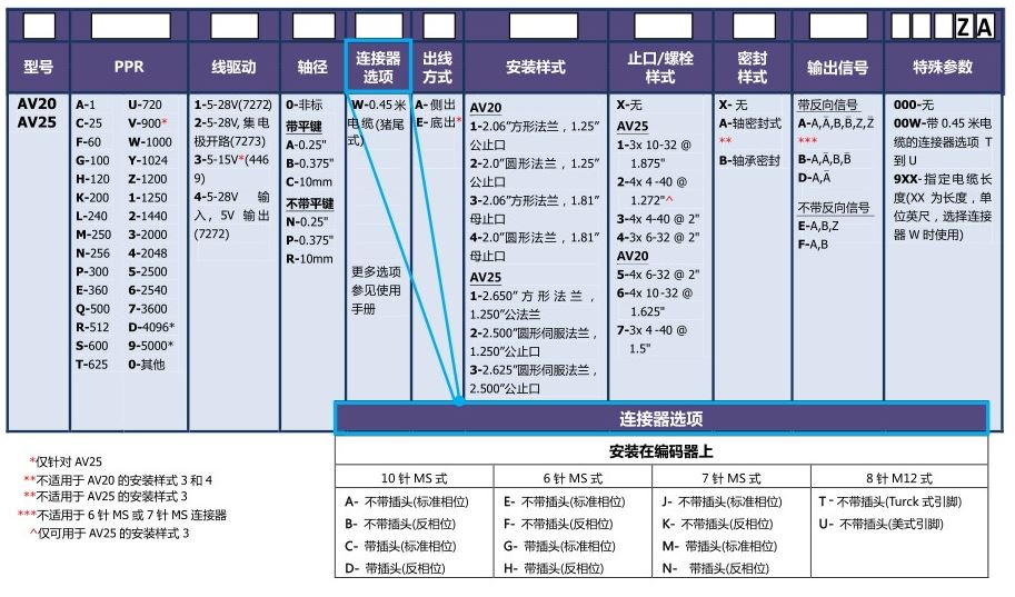 | ○ | 軸徑范圍:0.25”",3/8"和10mm | ○ | AV20 PPR范圍:1 - 3600 | |||